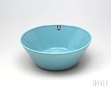 黄色とターコイズ1つずつのプレート、ボウル、マグカップ、